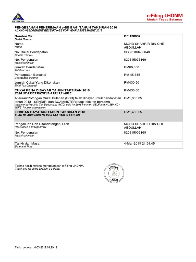 See actions taken by the people who manage and post content. Tarikh akhir untuk mengisi dan menyerahkan borang be untuk cukai individu tahun taksiran 2019 adalah pada 30 april 2020. I checked on efiling and noticed that my 2019/2020 return has been issued. Similar to tarikh gaji pencen 2019. 3) anda boleh terus mengakses portal rasmi lembaga hasil dalam negeri untuk memulakan proses pendaftaran sekiranya anda baru pertama kali.